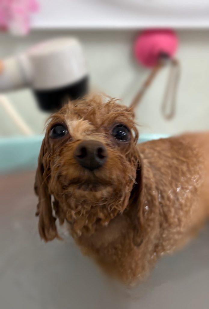ココちゃん。マイクロバブル温浴と~っても気持ちよさそうでした~。お仕上がりもふわっふわっで~す。😆👍