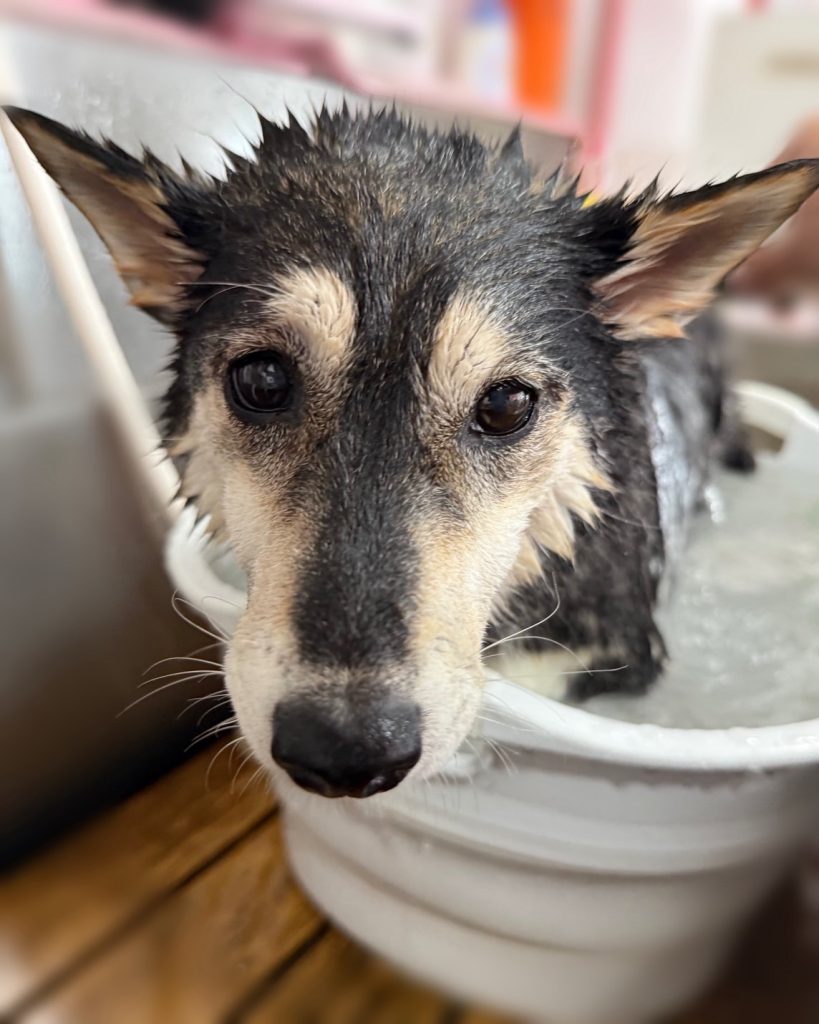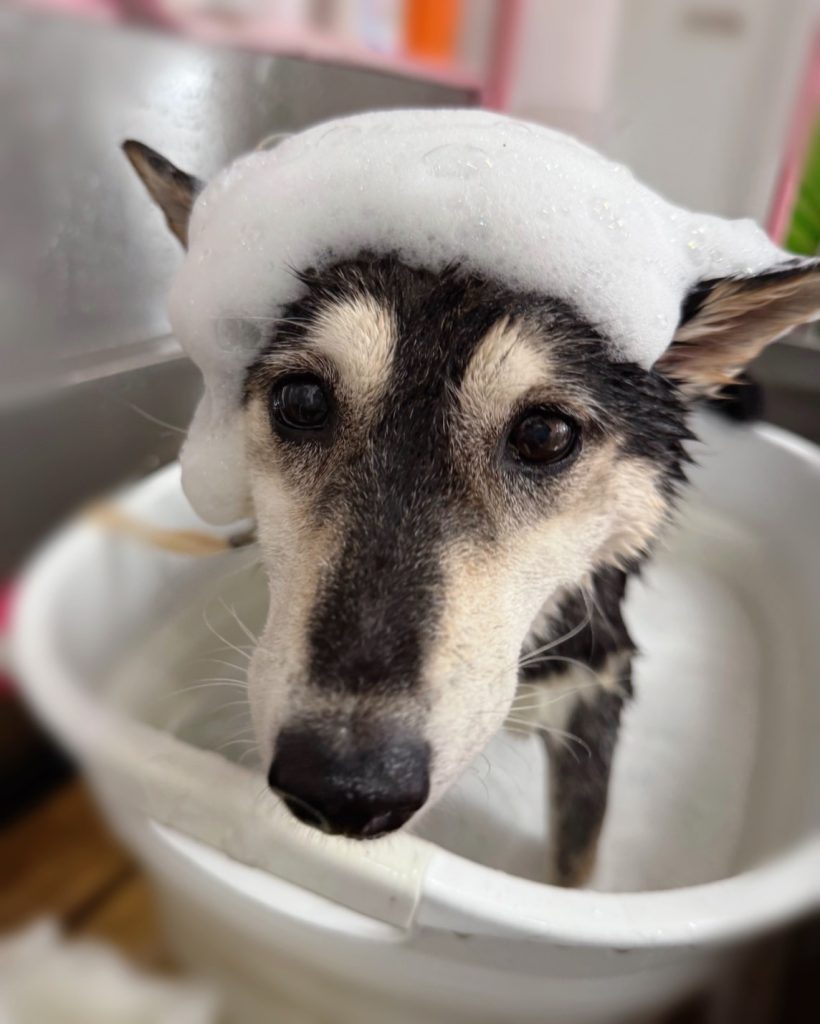 ハナちゃん。マイクロバブルかけ流しとても気持ちよさそうでした~。お仕上がりもふわっふわっです。🎵🎵🎵