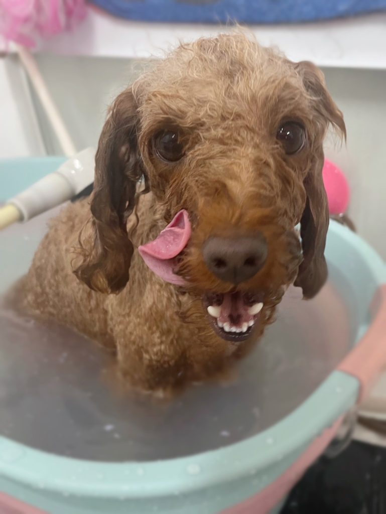 心晴ちゃん。炭酸泉温浴と~っても気持ちよさそうでした~。お仕上がりもふわっふわっで~す。😊👍