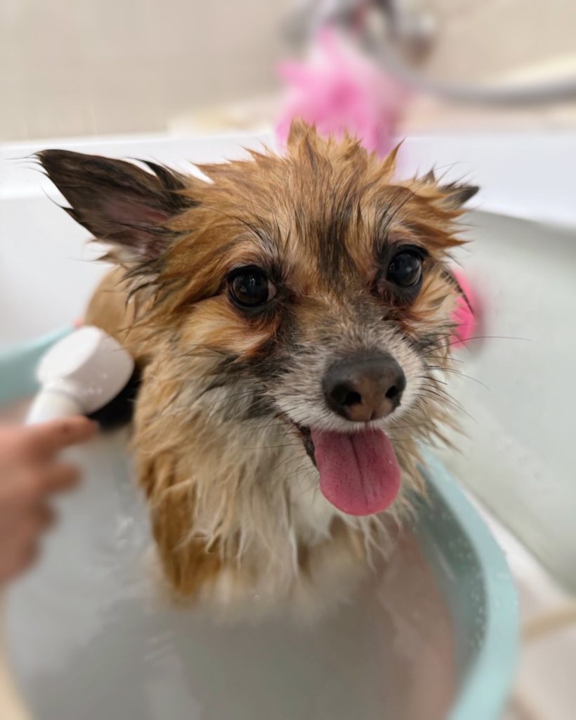 てるみちゃん。マイクロバブル温浴と~っても気持ちよさそうでした~。お仕上がりもふわっふわっで~す。😆👍