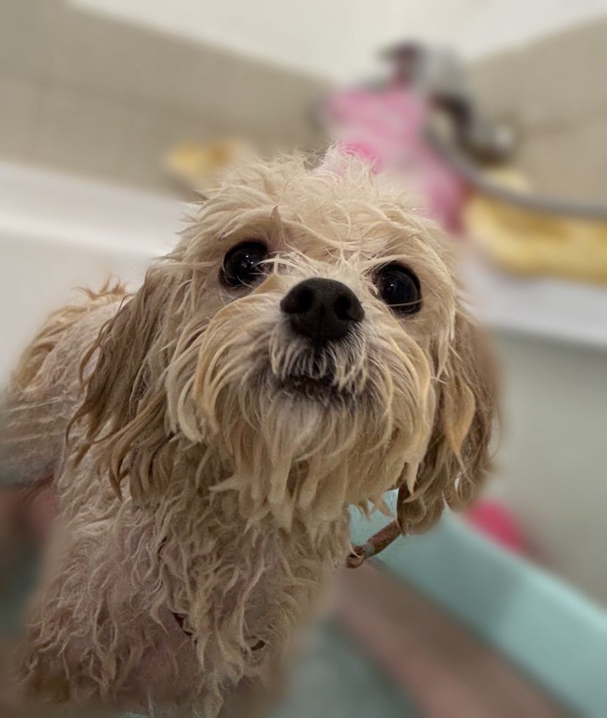 さ~っ。ティムくん。ママさん。のお迎え前にカットと高濃度炭酸泉スパコースやって行こ~ね~。🛀🛀🛀