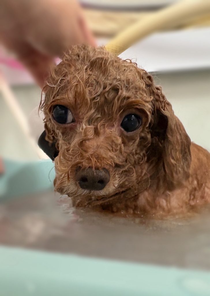 今回のオーダーは、お体6.4mm、四肢19mmストレート、頭高めテディーベア、お口周り小さめでまあるく、お耳伸びた分カットしてすそまあるく、歯磨き、高濃度炭酸泉スパコースでした。