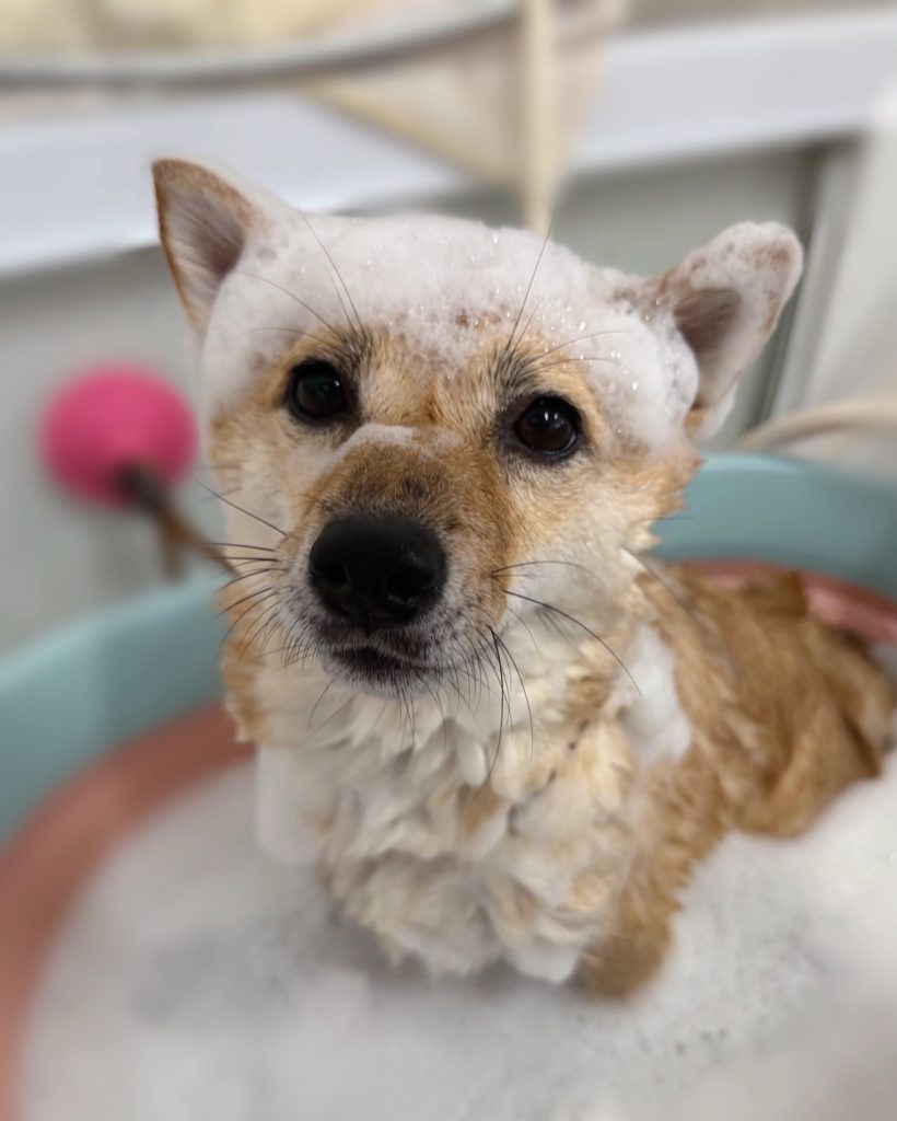 モカちゃん。マイクロバブル温浴と~っても気持ちよさそうでした~。お仕上がりもふわっふわっで~す。😝😝😝