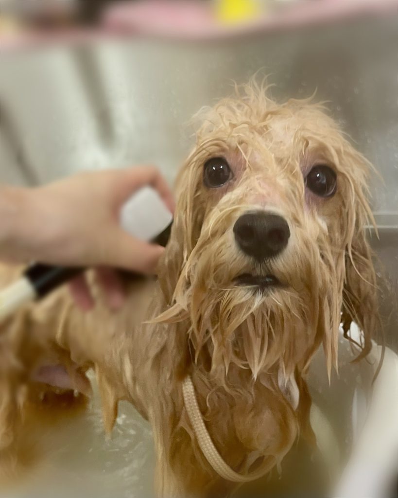 さ~っ。きなこくん。シャンプーマシーン使ってマイクロバブルコースやって行こ~ね~。🛀🛀🛀