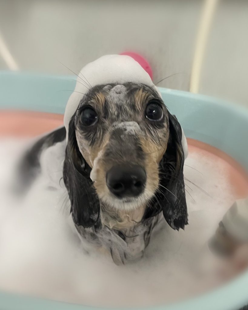 ジュエルちゃん。温浴&マッサージ効果と~っても気持ちよさそうでした~。お仕上がりもふわっふわっです。😝😝😝
