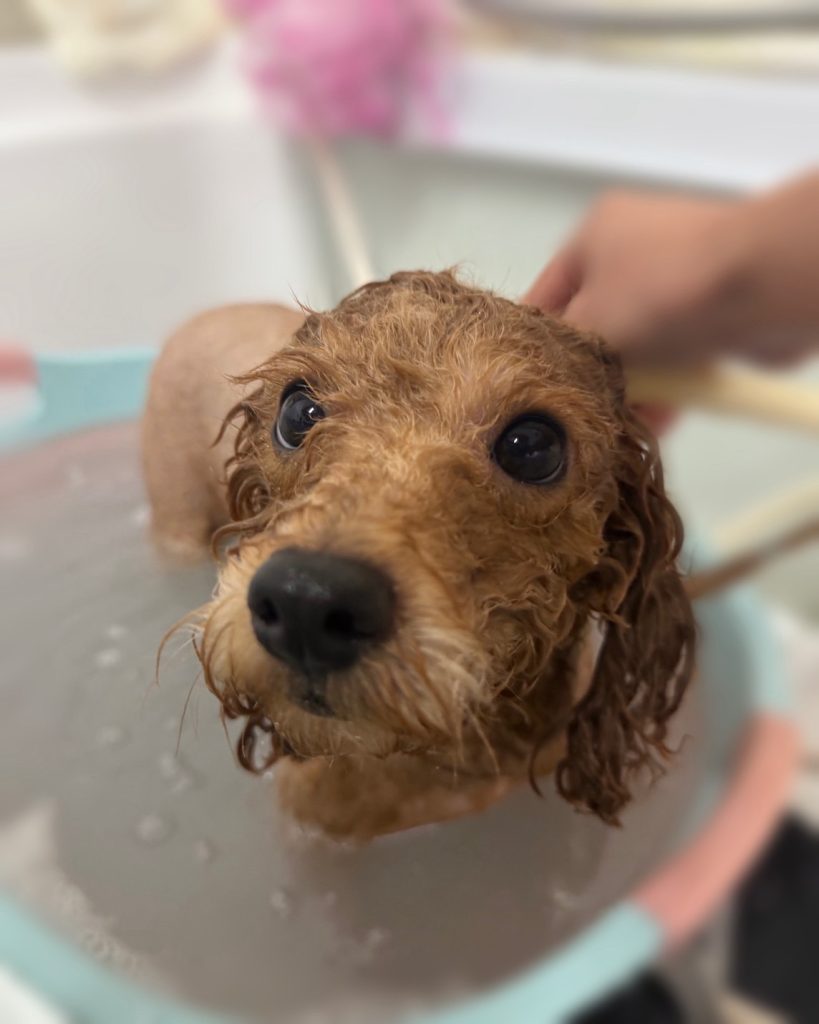 今日はモコちゃん。高濃度炭酸泉スパコースをチョイスしていただけたのでbloopシャンプー使っていくよ~。bloopシャンプー+高濃度炭酸泉スパコースは最強のコンビとなります。症状改善していきますよ~に。🎉🎉🎉