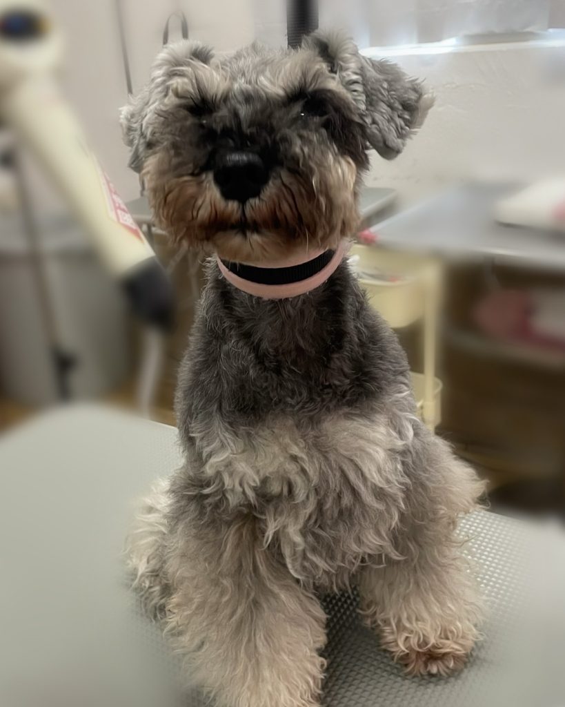 今回のオーダーは、お体2mmシュナライン、四肢25mmブーツ、お顔シュナウザーカット、眉&お口元まあるく、まつげ3.5cm残しでした。