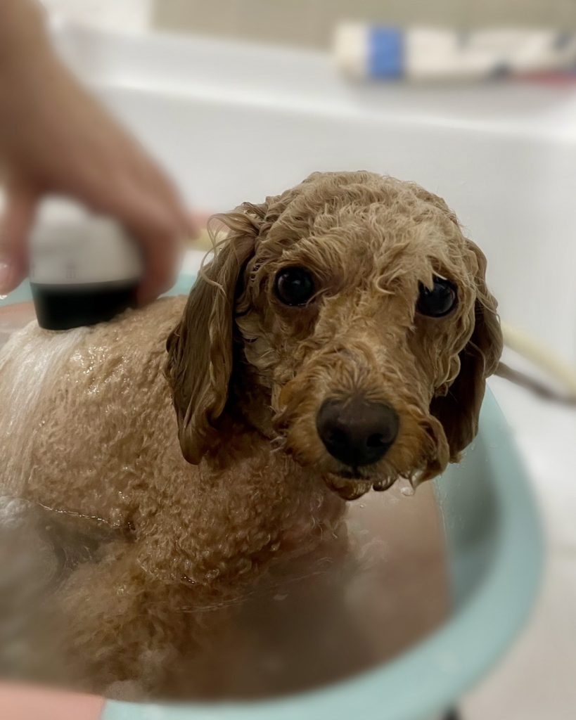 ブランくん。炭酸泉温浴と~っても気持ちよさそうでした~。お仕上がりもふわっふわっです。🎵🎵🎵
