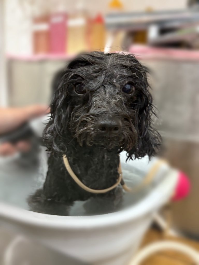 ロコちゃん。炭酸温浴と~っても気持ちよさそうでした~。お仕上がりもふわっふわっで~す。🎵🎵🎵