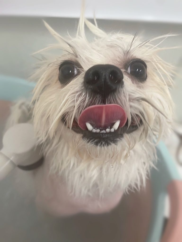 大福くん。炭酸泉温浴と~っても気持ちよさそうでした~。お仕上がりもふわっふわっで~す。😝😝😝