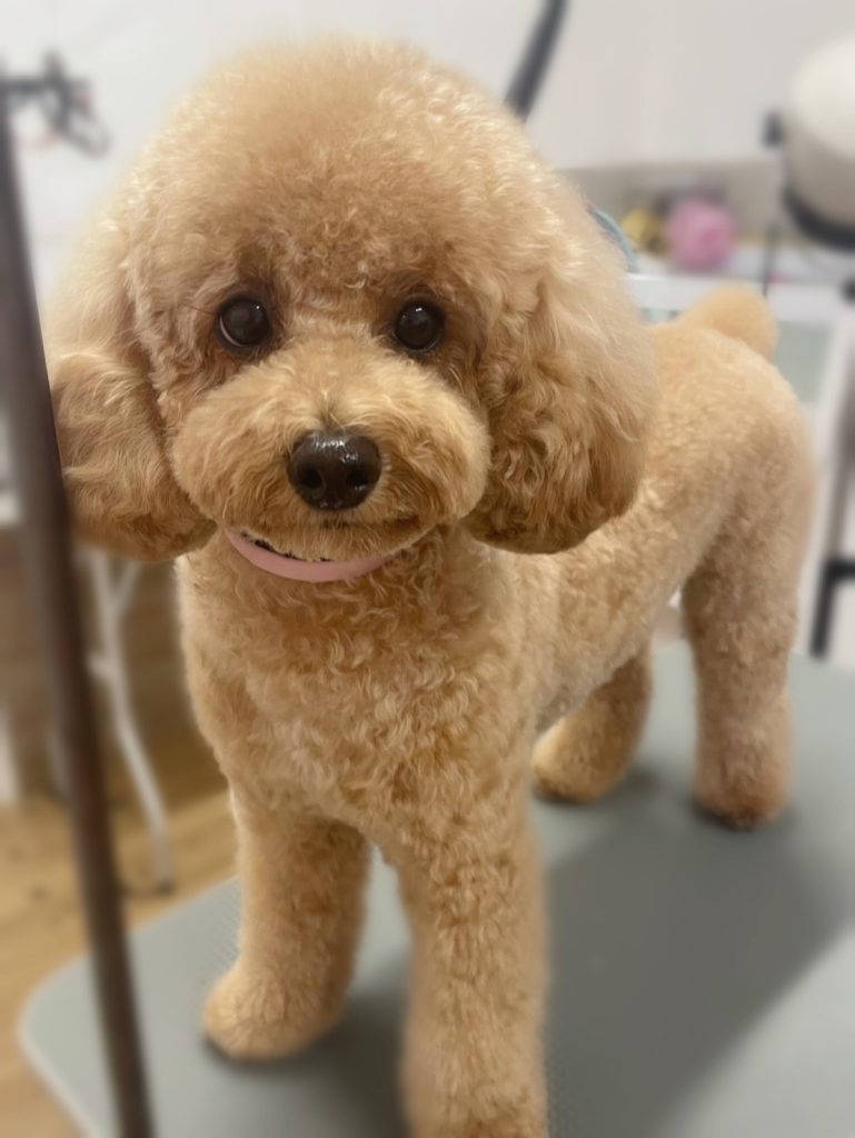 今回のオーダーは、お体16mm、四肢16mmストレート、お顔頭とお耳つなげてテディーベア、目周りスッキリ、マズルふんわり、しっぽまあるく、マイクロバブル+高濃度炭酸泉スパWコースでした。