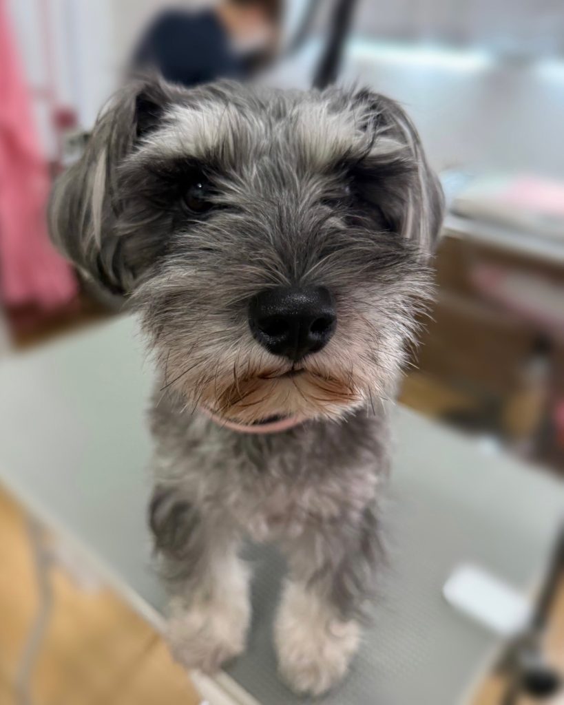今回のオーダーは、お体3.2mm、四肢22mmでストレート、お顔シュナウザーカット、マズル小さめで楕円形、お耳ふちでまあるく、眉毛短めでまあるく、まつげ2cm残しでした。