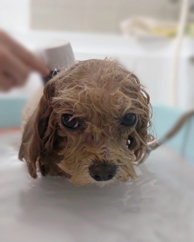 おもちゃん。マイクロバブル温浴とても気持ちよさそうでした~。お仕上がりもふわっふわっです。🎵🎵🎵