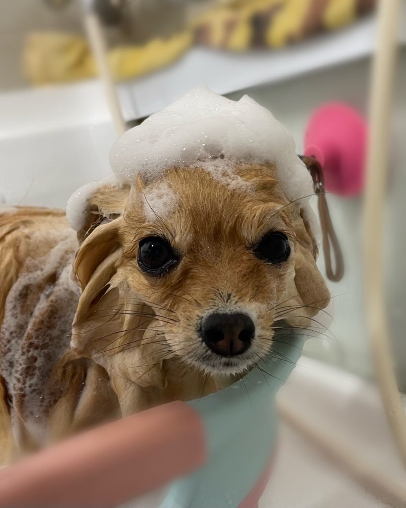 シャンプーコース+マイクロバブルコースでぴのちゃん。さ~っぱりしました。ヾ(≧▽≦*)o