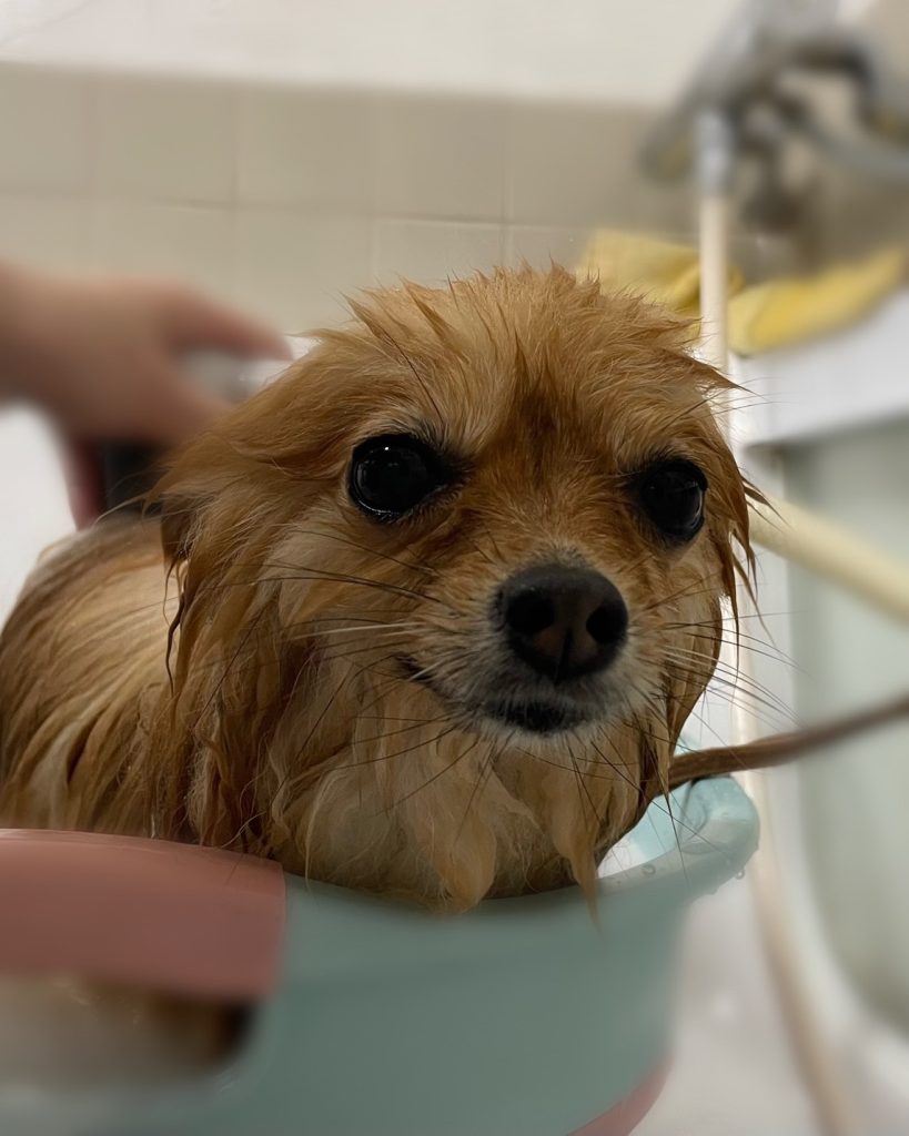 ぴのちゃん。マイクロバブル温浴と~っても気持ちよさそうでした~。お仕上がりもふわっふわっで~す。🎵🎵🎵