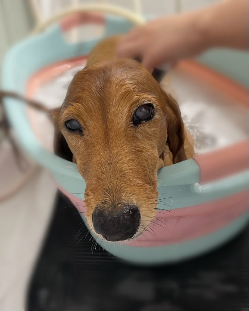 マロンくん。炭酸泉温浴と~っても気持ちよさそうでした~。お仕上がりもふわっふわっで~す。🎵🎵🎵