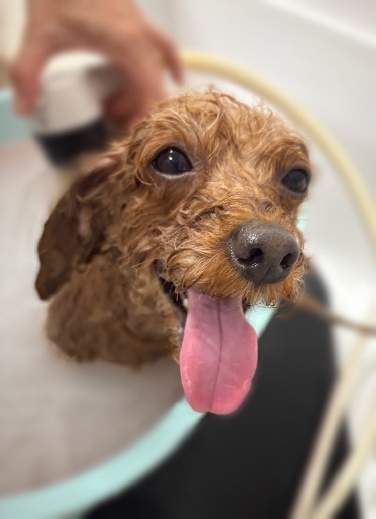 モカちゃん。マイクロバブル温浴と~っても気持ちよさそうでした~。お仕上がりもふわっふわっで~す。😆👍