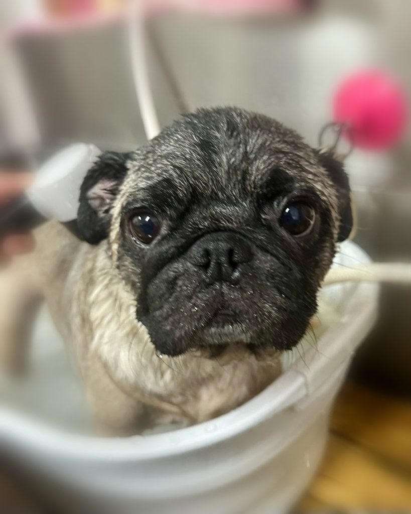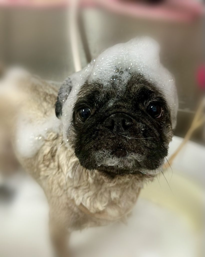 おもちちゃん。マイクロバブル温浴と~っても気持ちよさそうでした。お仕上がりもふわっふわっで~す。🎵🎵🎵