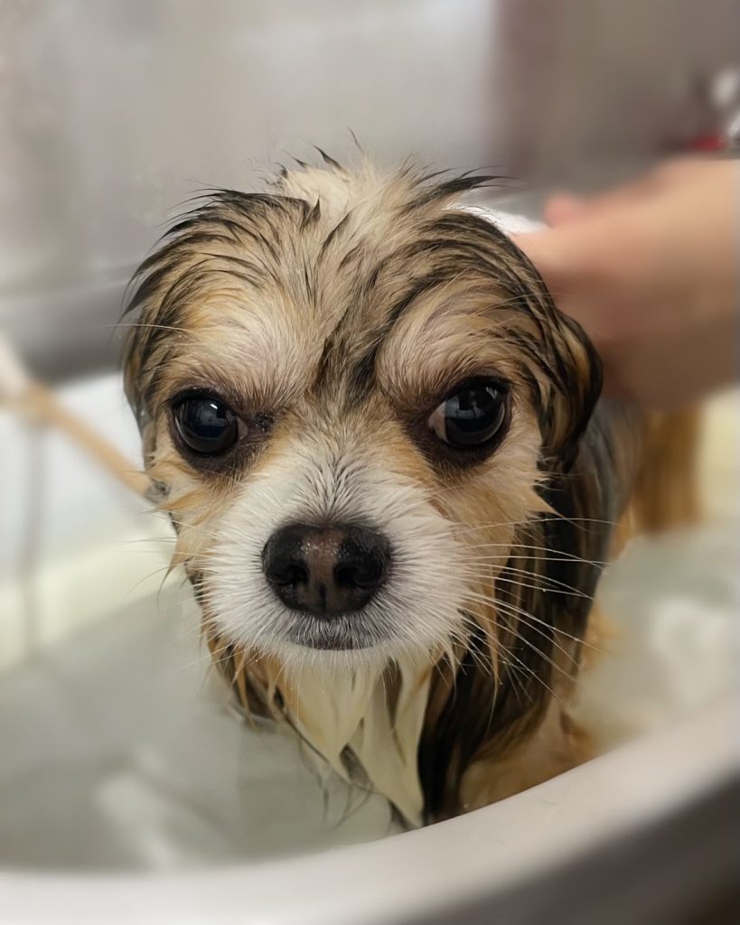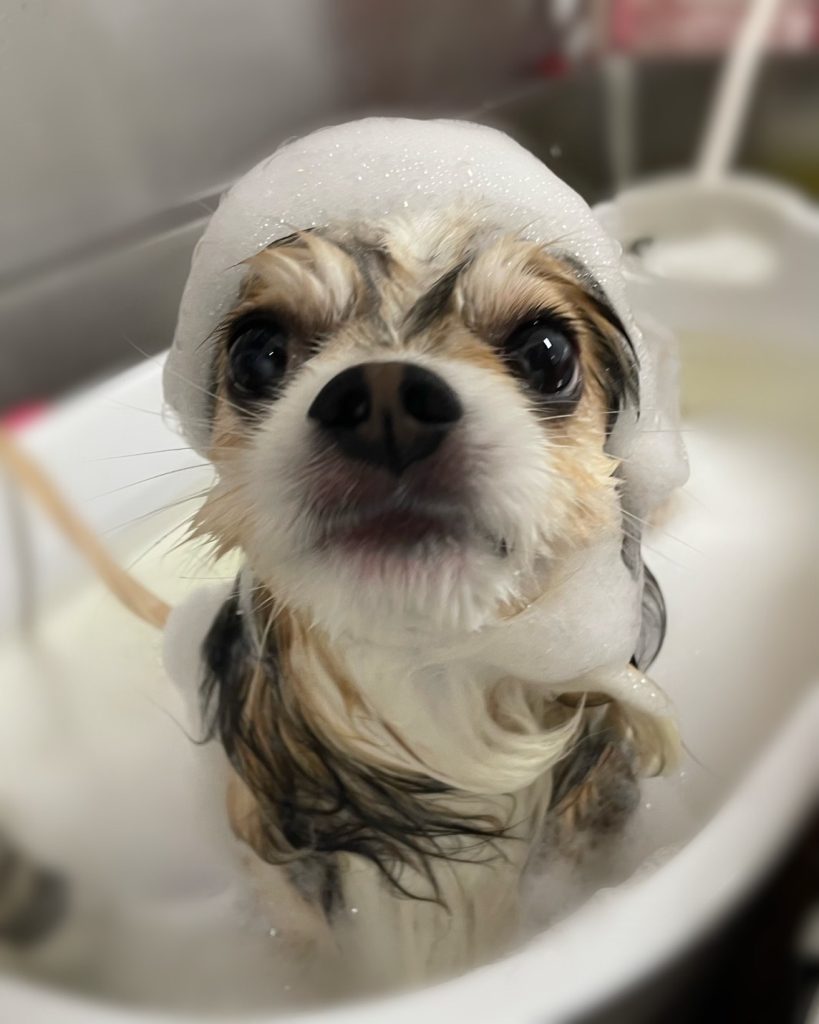 七宝くん。炭酸泉温浴と~っても気持ちよさそうでした~。お仕上がりもふわっふわっで~す。😆👍