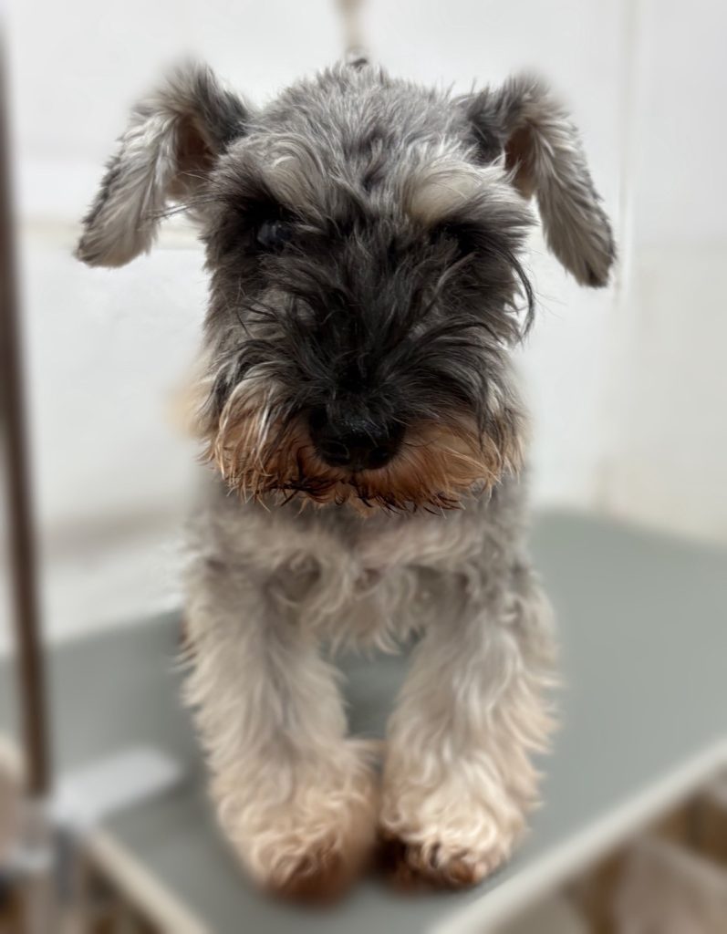 今回のオーダーは、お体2mmシュナライン、四肢22mm太めストレート(目指し中)、お顔シュナウザーカット、眉短くまあるく、お口周り小さめでまあるく、まつげ残しでした。