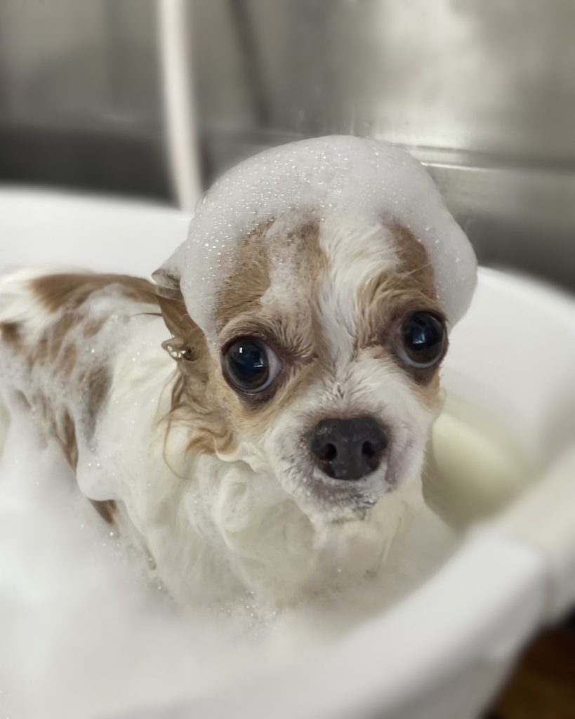 2025.10.11 ブログ ここあちゃん チワワのここあちゃん。 こんにちは(^^)/ 今回のオーダーは、シャンプーコースでした。 ママさん。と仲良~くご来店いただけたここあちゃん。😍😍😍 担当STAFFと今日も仲良~く進めていました~。✨✨✨ 楽しかったね~。トリミング。🎵🎵🎵 シャンプーコースでここあちゃん。さ~っぱりしました。ヾ(≧▽≦*)o ここあちゃん。ありがとうございました。( *´艸`)