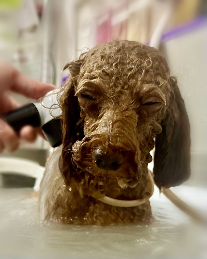 ちゃちゃまるくん。マイクロバブル温浴と~っても気持ちよさそうでした~。お仕上がりもふわっふわっで~す。🎵🎵🎵