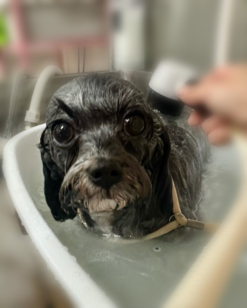 まるちゃん。炭酸泉温浴と~っても気持ちよさそうでした~。お仕上がりもふわっふわっで~す。😝👍