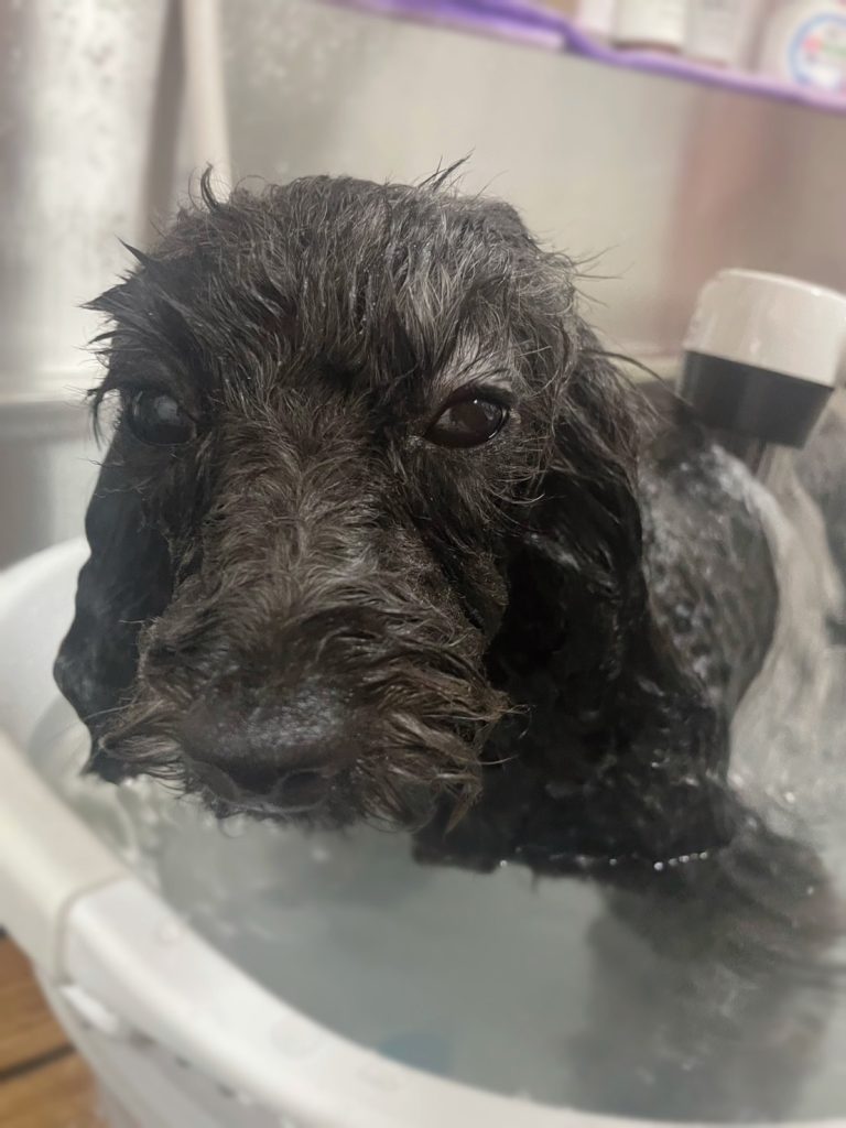 ロコちゃん。炭酸温浴と~っても気持ちよさそうでした~。お仕上がりもふわっふわっで~す。🎵🎵🎵