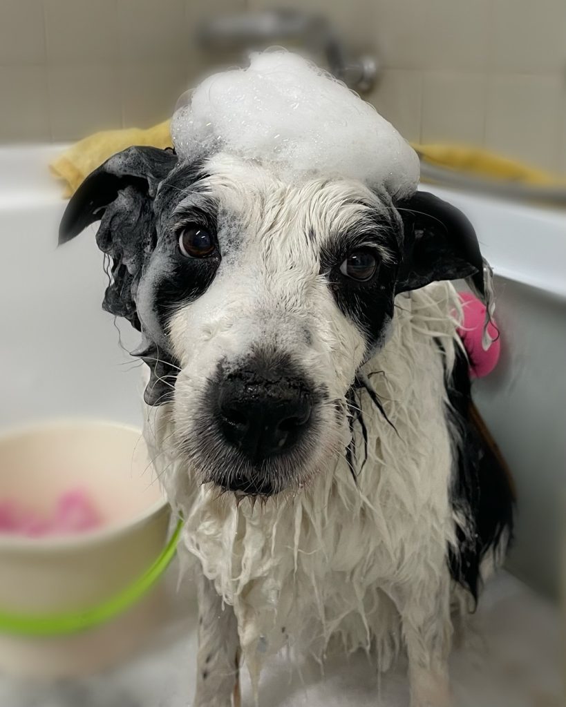 さ~っ。リンちゃん。シャンプーマシン使ってマイクロバブルコースやって行こ~ね~。🛀🛀🛀