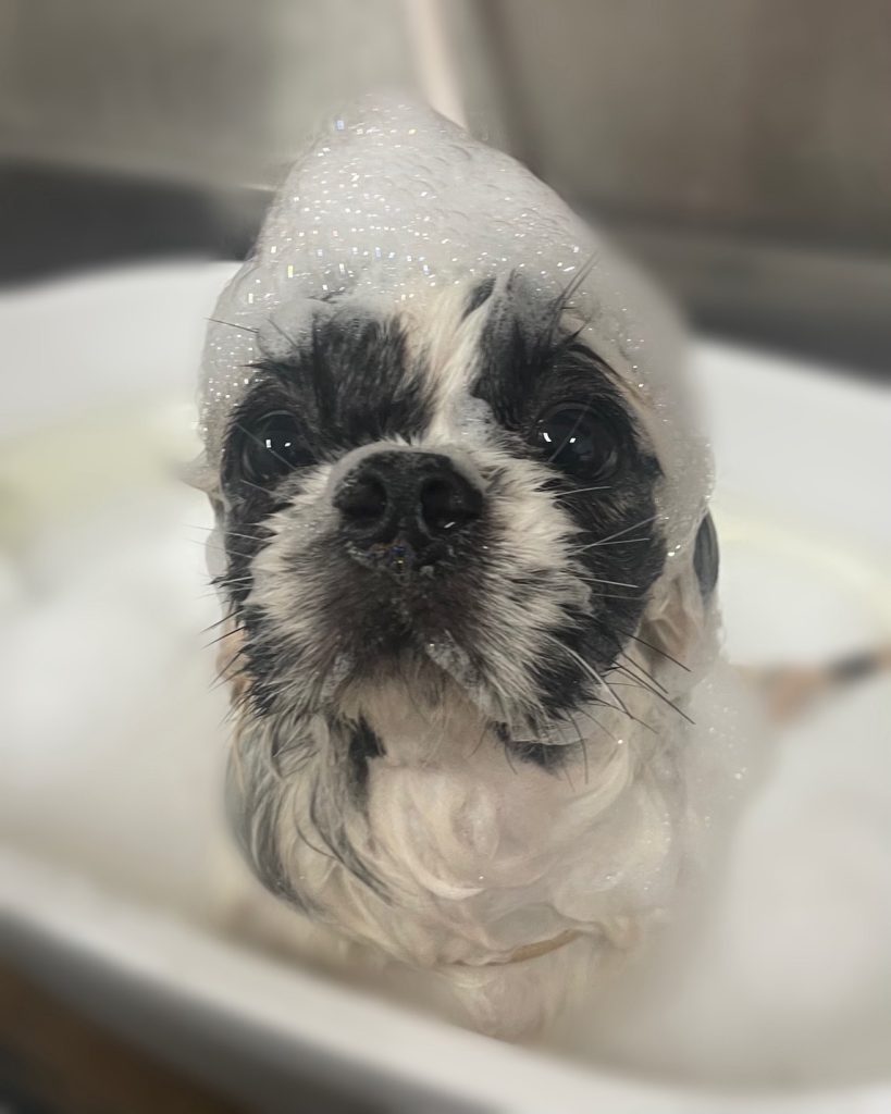 今回は匂いが気になるとの事でしたので、匂いの原因となる脂汚れや皮脂汚れ抜け毛さんを毛穴の中から落とせるマイクロバブルコースをお選びいただきました。🛀🛀🛀