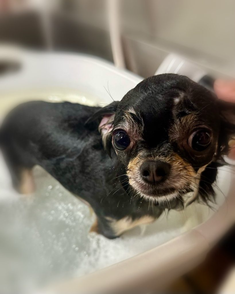 もずくちゃん。炭酸泉温浴と~っても気持ちよさそうでした~。お仕上がりもふわっふわっで~す。😆👍