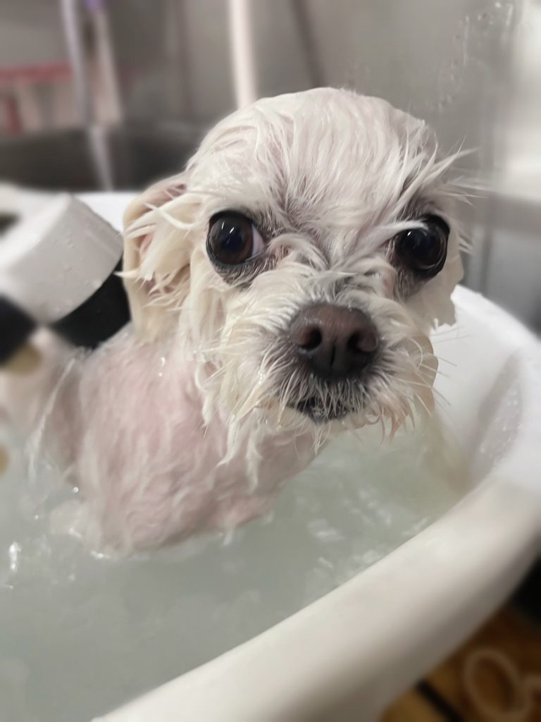 ももちゃん。マイクロバブル温浴と~っても気持ちよさそうでした~。お仕上がりもふわっふわっで~す。😝😝😝