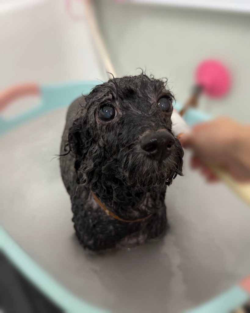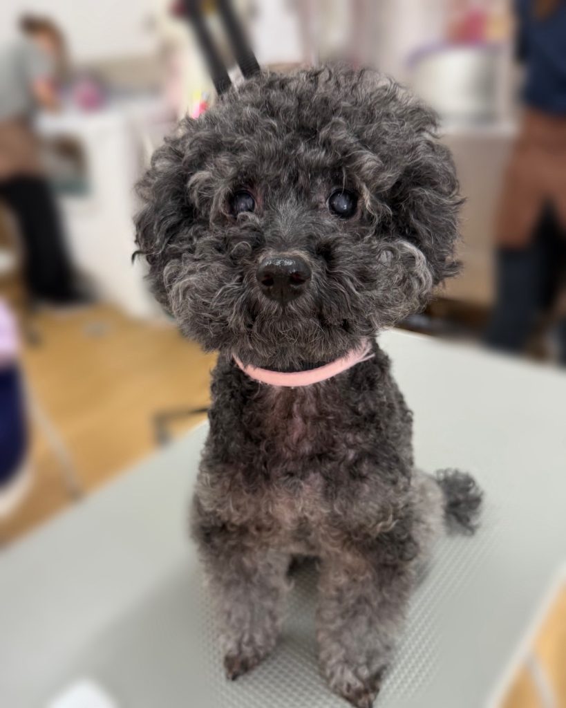 今回のオーダーは、お体3.2mm、四肢19mmストレート、お顔アフロ、お耳短くふちまあるく、しっぱさきギリギリで伸びた分カット、歯磨き、マイクロバブルコースでした。