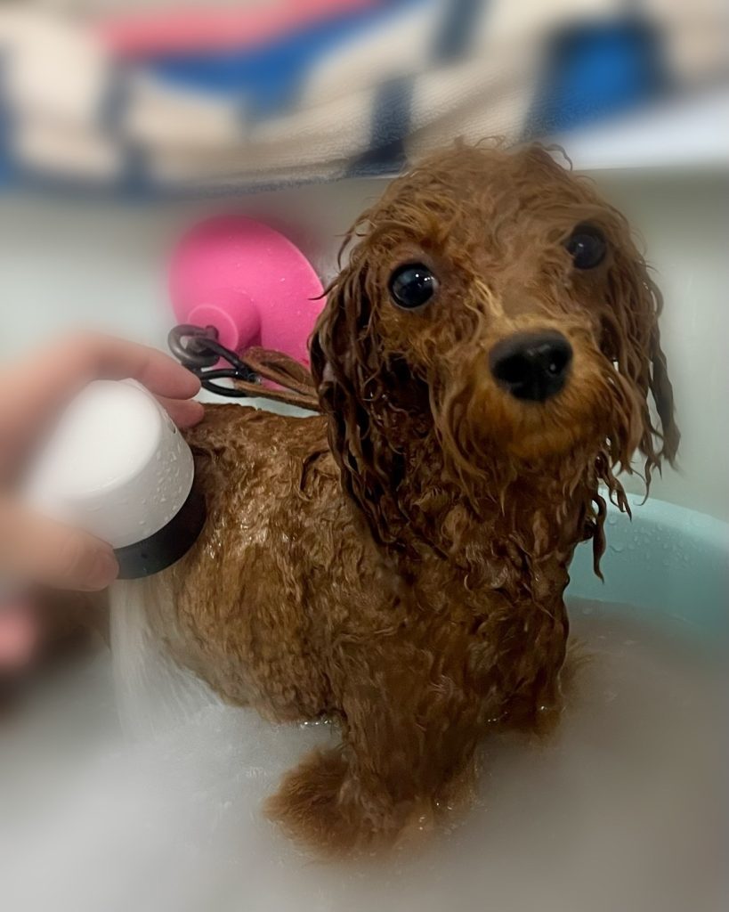 モカちゃん。マイクロバブル温浴と~っても気持ちよさそうでした~。お仕上がりもふわっふわっで~す。🎵🎵🎵