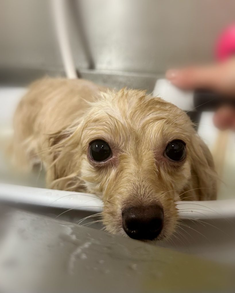 凪くん。炭酸泉温浴と~っても気持ちよさそうでした~。お仕上がりもふわっふわっです。🎵🎵🎵
