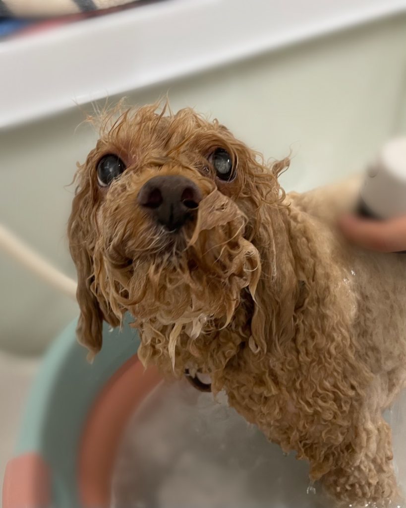 今回のオーダーは、全身13mm、お顔お写真参照、目周りスッキリ、しっぽ筒状、足先バリカン、マイクロバブルコースでした。