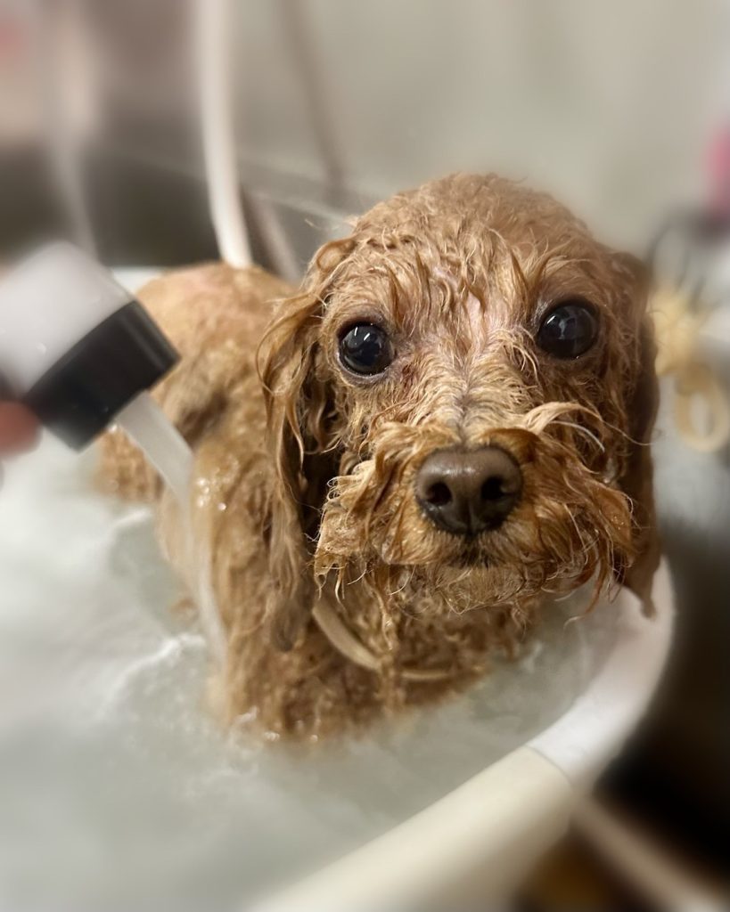 ココちゃん。マイクロバブル温浴と~っても気持ちよさそうでした~。お仕上がりもふわっふわっで~す。😆👍