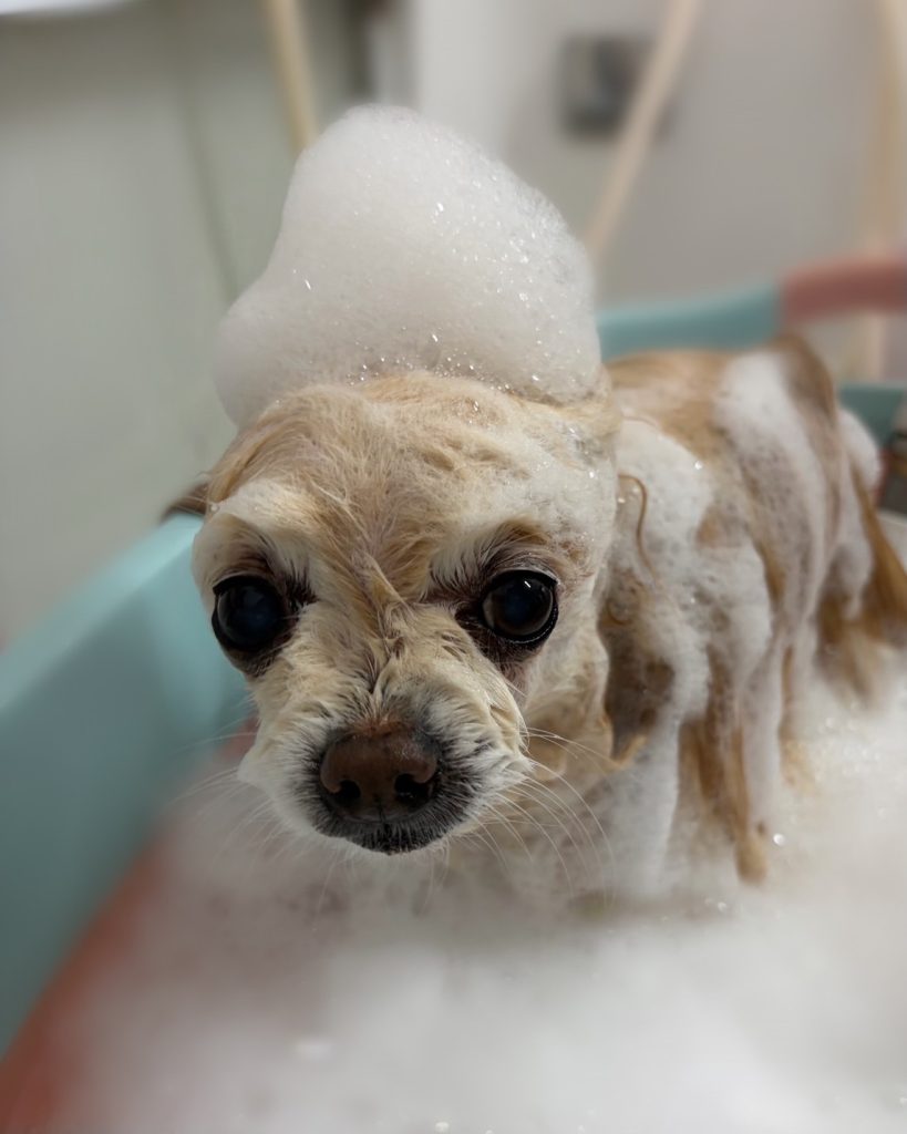 メイちゃん。マイクロバブル温浴しとても気持ちよさそうでした~。お仕上がりもふわっふわっです。🎵🎵🎵