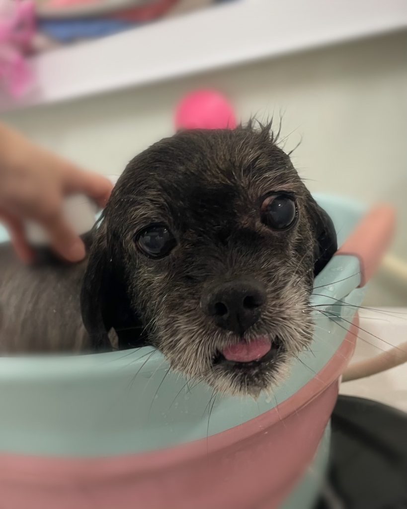たんちゃん。高濃度炭酸温浴と~っても気持ちよさそうでした~。お仕上がりもふわっふわっで~す。🎵🎵🎵