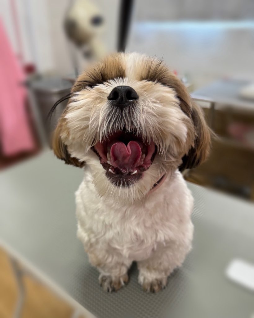 今回のオーダーは、お体6.4mm、四肢16mm、四肢先足バリライン1mm並、お顔お写真参照、お耳顎ラインですそまあるく、しっぽ伸びた分カット、まつげそろえる、高濃度炭酸泉スパコースでした。