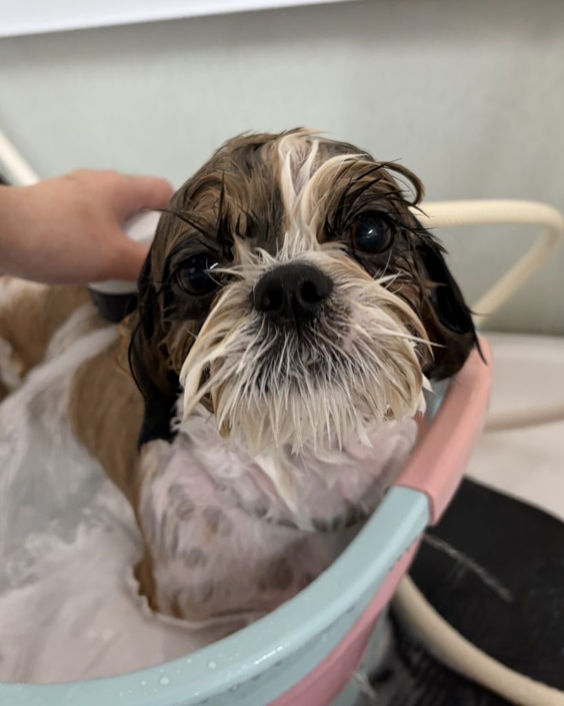ルークくん。炭酸泉温浴と~っても気持ちよさそうでした~。お仕上がりもふわっふわっで~す。🎵🎵🎵