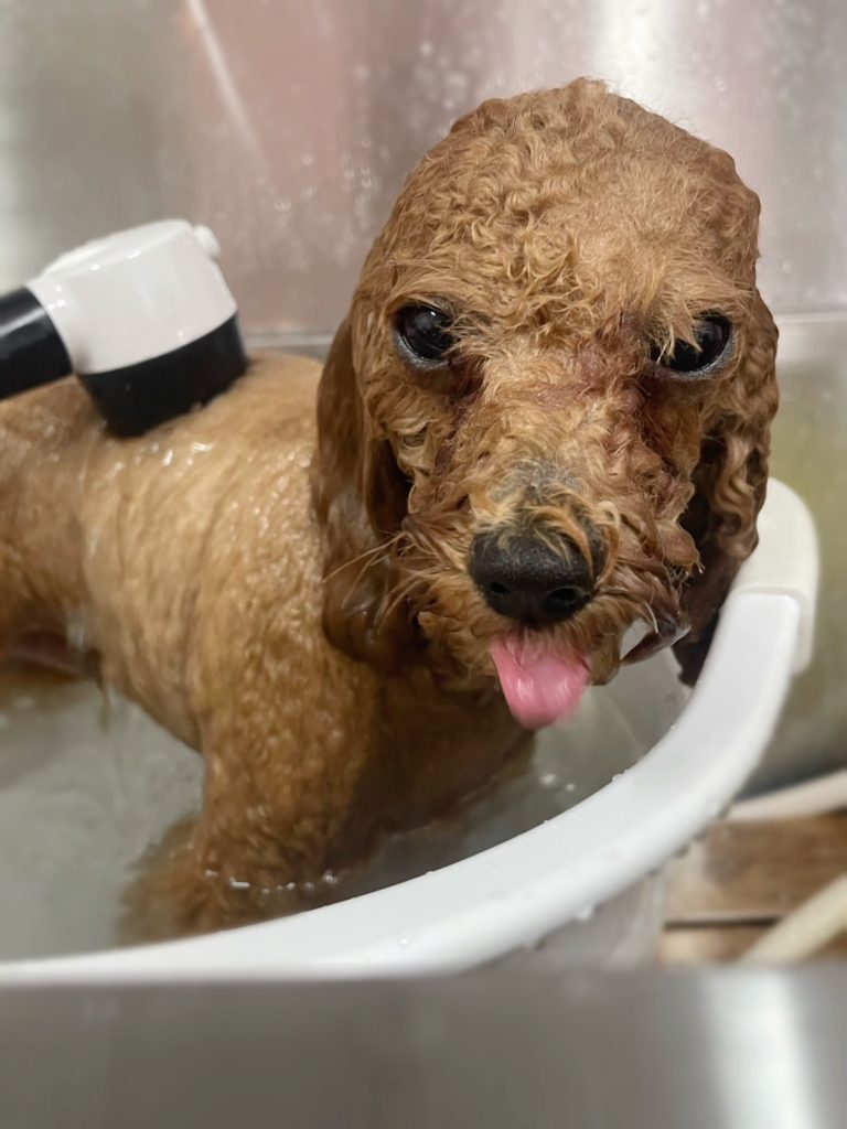 藍くん。炭酸泉温浴と~っても気持ちよさそうでした~。お仕上がりもふわっふわっで~す。😝😝😝