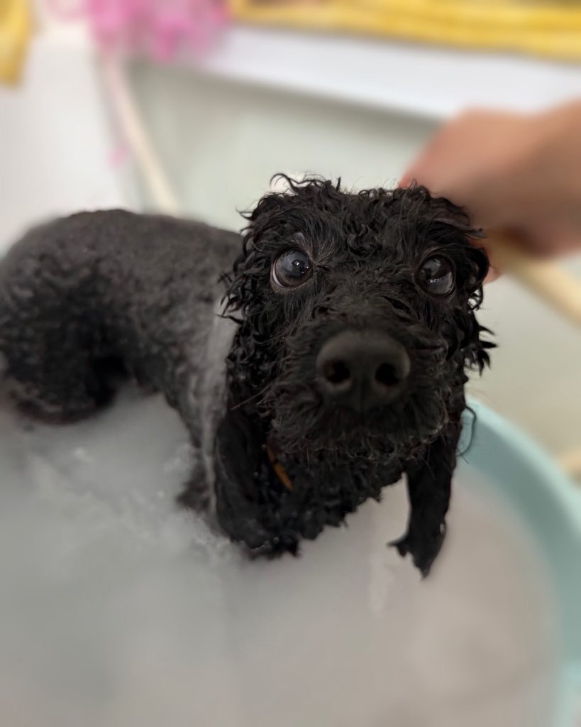 メルくん。温浴&マッサージ効果と~っても気持ちよさそうでした。お仕上がりもふわふわになりました~。😝😝😝