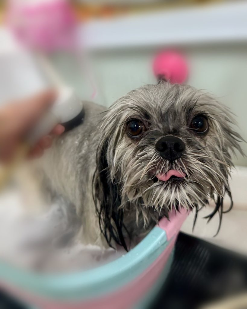 メッシュくん。炭酸泉温浴と~っても気持ちよさそうでした~。お仕上がりもふわっふわっで~す。😝😝😝