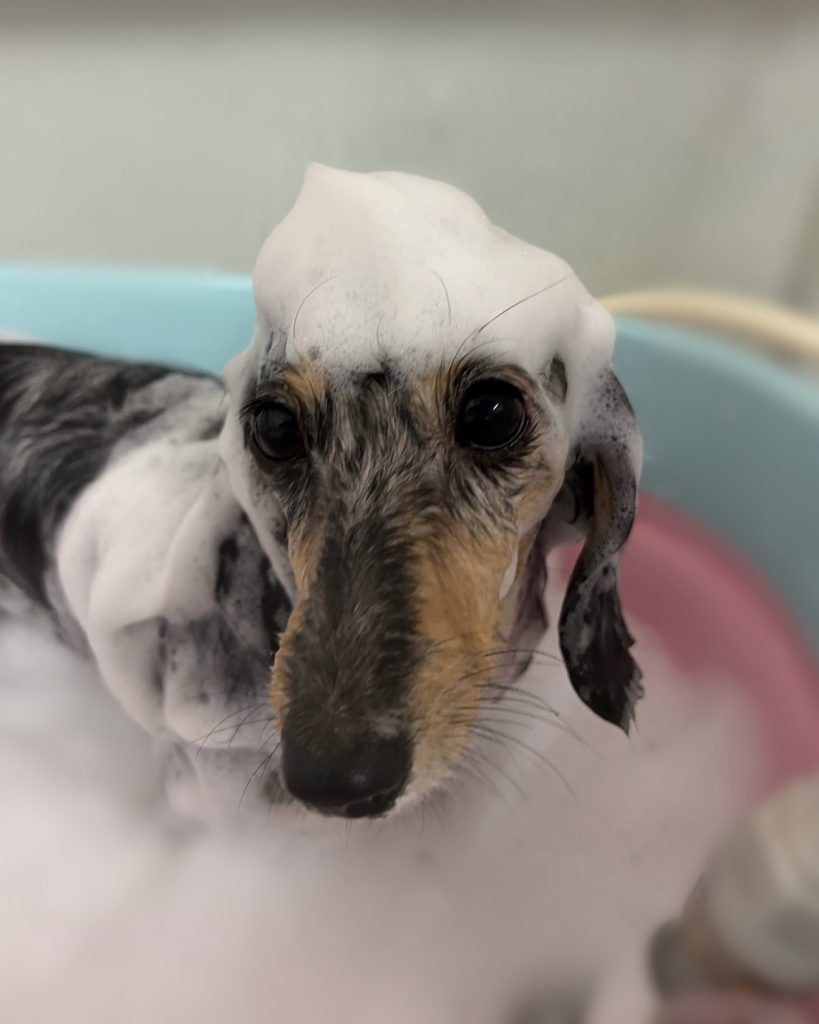 ジュエルちゃん。温浴&マッサージ効果と~っても気持ちよさそうでした~。お仕上がりもふわっふわっです。😝😝😝
