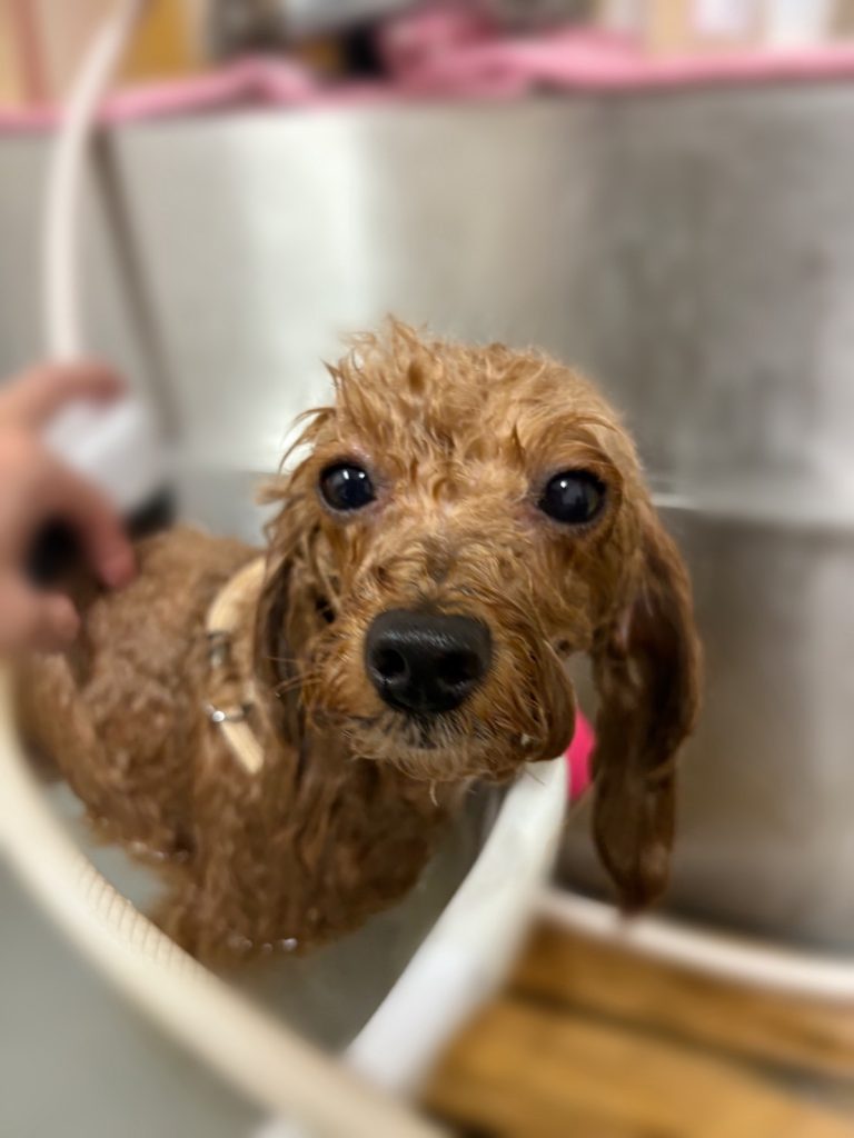 はちくん。炭酸泉温浴と~っても気持ちよさそうでした~。お仕上がりもふわっふわっで~す。😝😝😝