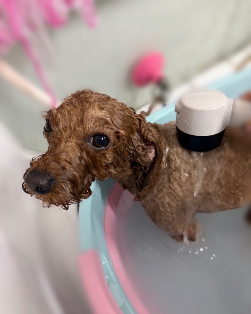 モカちゃん。マイクロバブル温浴と~っても気持ちよさそうでした~。お仕上がりもふわっふわっで~す。😆👍