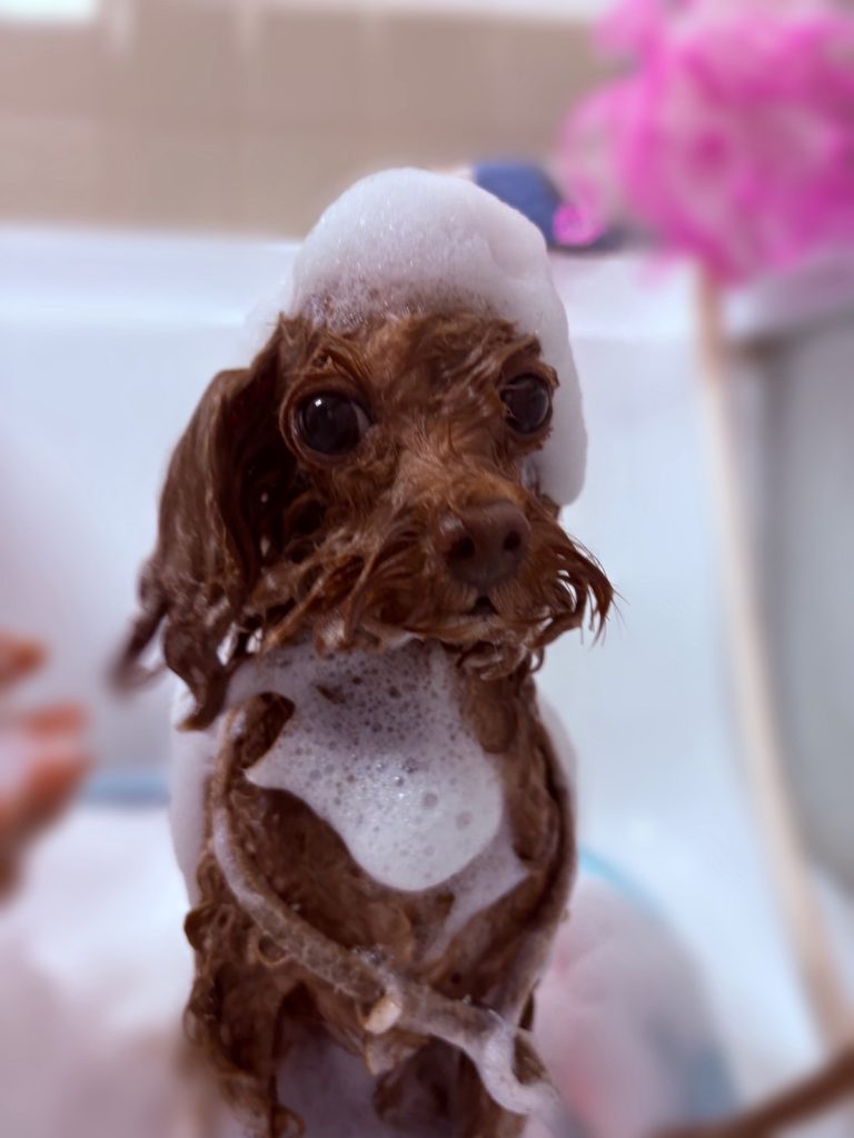 りりちゃん。炭酸泉温浴と~っても気持ちよさそうでした~。お仕上がりもフワッフワッです。🎉🎉🎉
