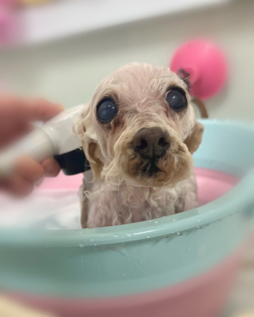 さ~っ。ミルキーちゃん。シャンプーマシーン使ってマイクロバブルコースやって行こ~ね~。🛀🛀🛀
