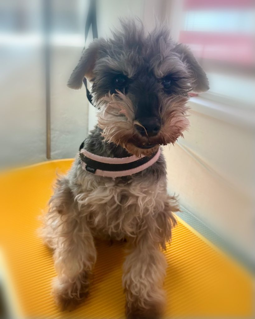 今回のオーダーは、お体2mmシュナライン、四肢細めストレート、お顔シュナウザーカット、お口周り小さめでまあるく、眉一体化、頭ソフトモヒカン、お耳&しっぽ2mm、まつげ2.5cm残しでした。